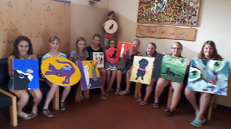 Ferienprogramm – Malkurs am 4.8.2018 mit Ursula Pernsteiner und Angelika Riehl.